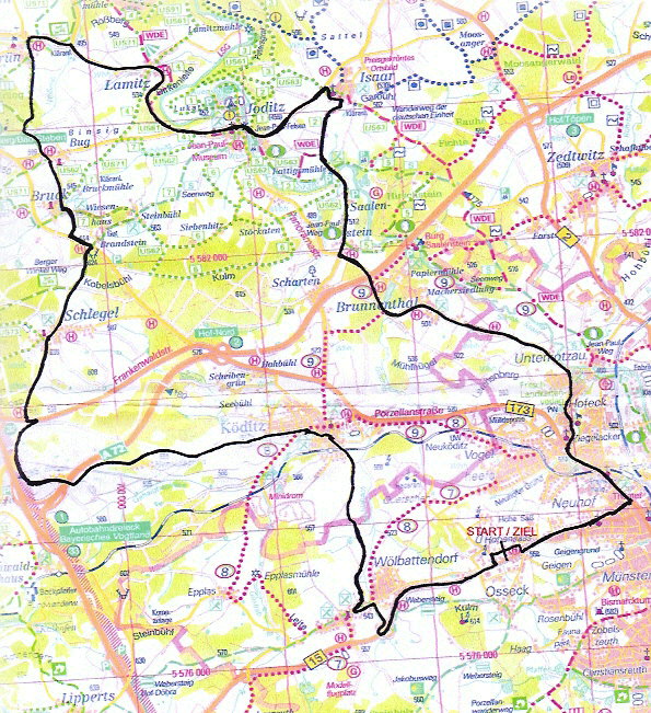 Es wurde nach auf einer Karte eingezeichneter Route rund um das landschaftlich schöne Hof gefahren. Auf der Strecke gab es Schilder mit Zahlen zu finden.